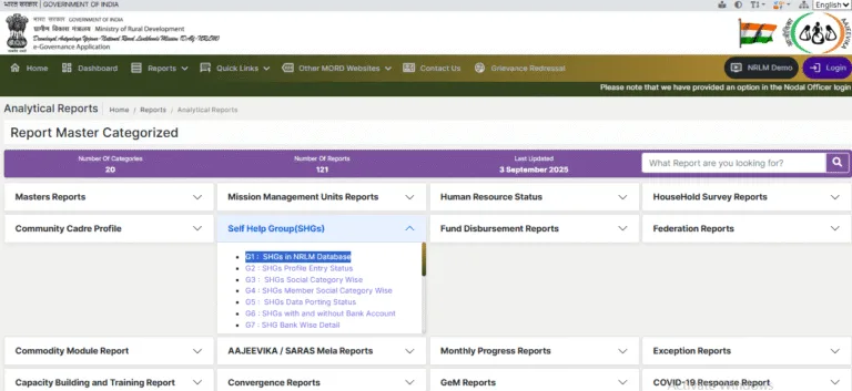 - On that page, in the “Report Master Categorized” section, you need to click on the “Self Help Group (SHGs)” option.
