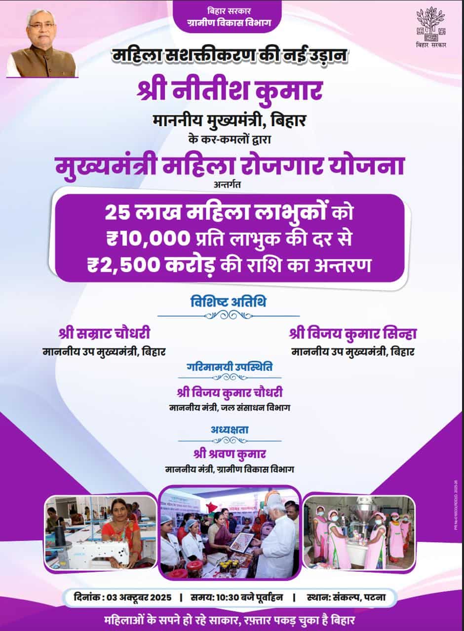 On October 3, 2025, Chief Minister Nitish Kumar transferred ₹10,000 each to 25 lakh women beneficiaries under the second installment of the scheme. This event took place at the Chief Minister’s official residence, where he interacted with the beneficiaries via video conferencing. With this release, a total of ₹2,500 crore has been disbursed to empower women across the state. LatestLY+1