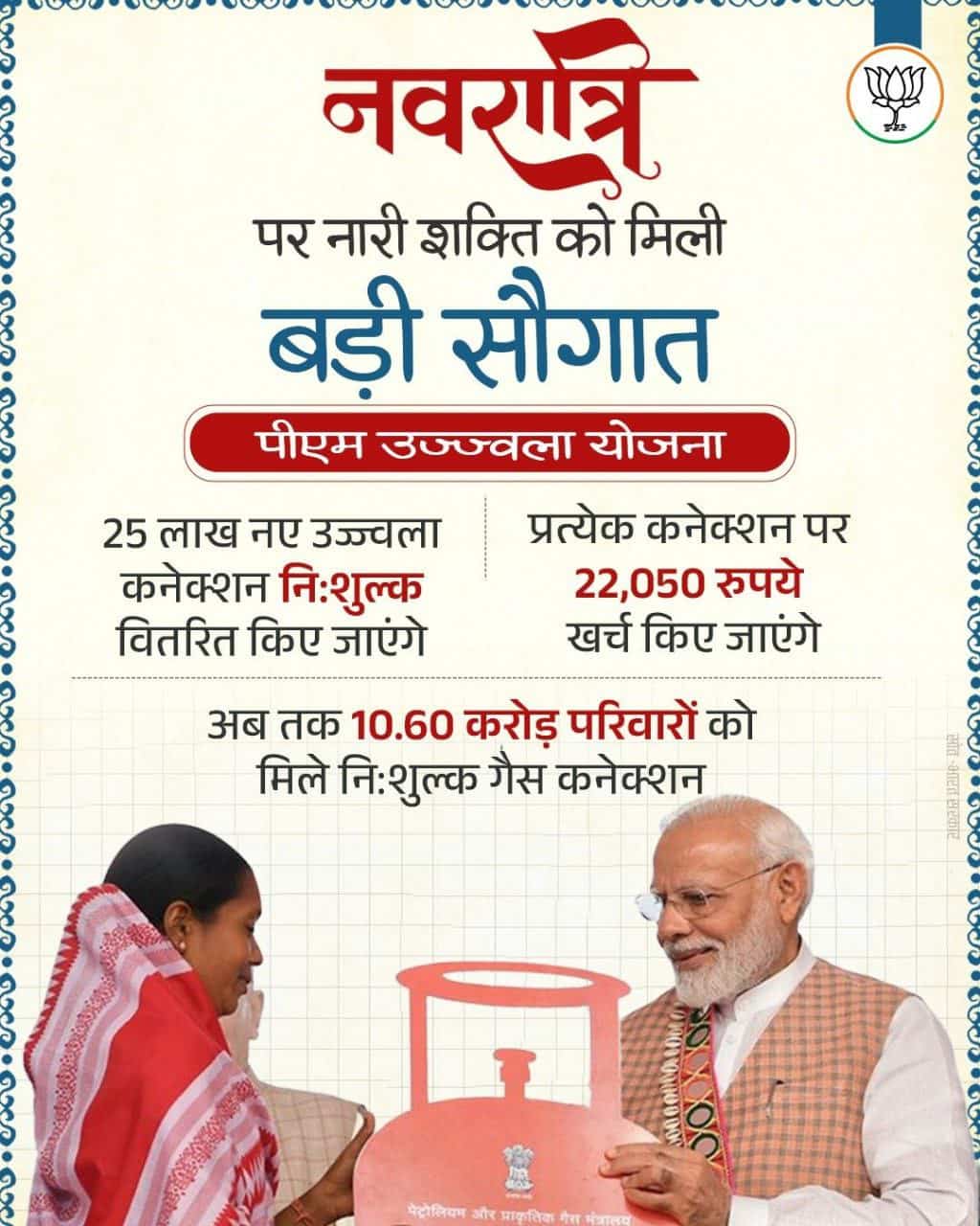 On the occasion of Navratri, the Government of India has announced a major benefit for women under the Pradhan Mantri Ujjwala Yojana (PMUY) 2025. According to the official announcement, 25 lakh new LPG connections will be distributed completely free of cost under this scheme.