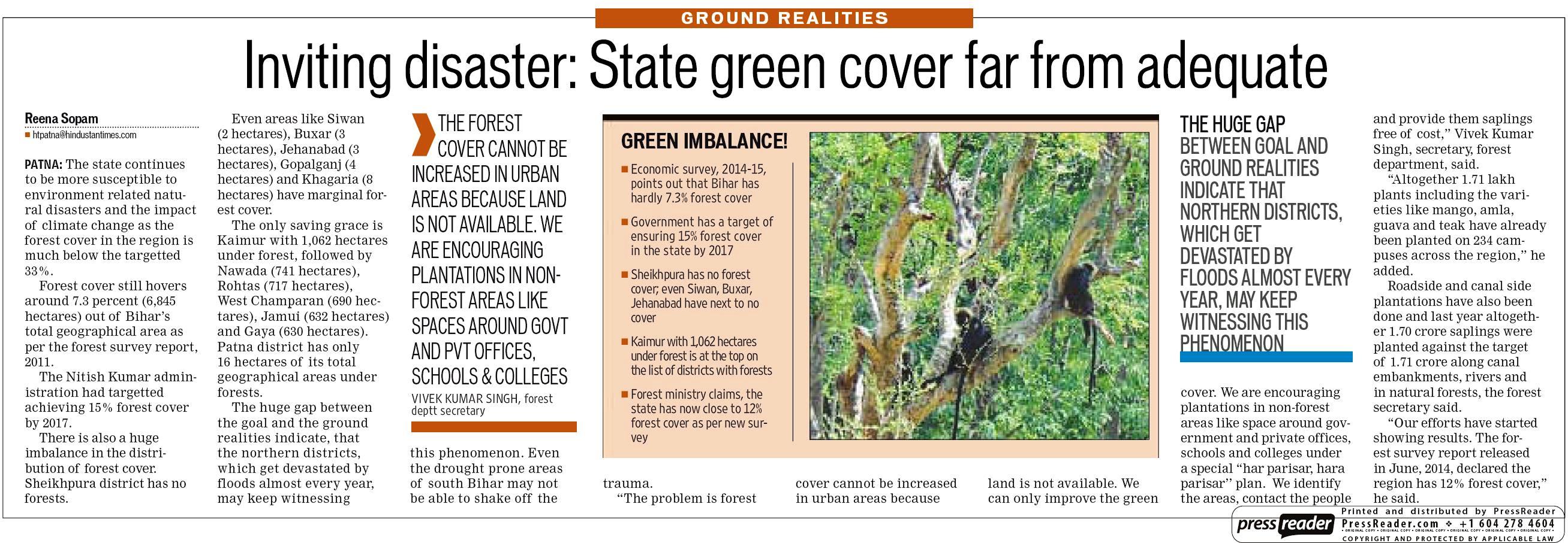 The State of Bihar, a multi-disaster prone state, is predominantly rural in character. The geo-climatic conditions of Bihar make it vulnerable to many hazards. The lives and livelihood of millions of the people residing in Bihar gets affected by various disasters from time to time. The State witnesses various types of natural and human induced disasters, like Floods, Drought, Earthquake, Fire, Cyclone (high speed winds), Road accidents, Stampede, Epidemics, Heat Waves, Cold Waves, and Landslides etc. Kosi Flood of 2008 and severe Earthquake of 15 January 1934 have been worst disasters in the history of Bihar and the country. In addition to natural disasters, human induced disasters also pose serious challenge to the people of Bihar. Environment and climate change issues have been at the centre of disasters with increased frequency of extreme weather conditions, thus requiring an eco-sensitive approach ...Read more